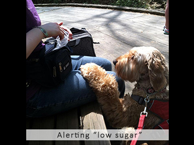 NIDAD told us about Chey, who had Type I diabetes, and their program of intense training for dogs to recognize and alert their companions to high and low blood sugar levels, waking or sleeping. We agreed to donate Happy Beige to NIDAD, and Chey was told a new friend was on her way.