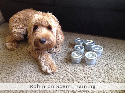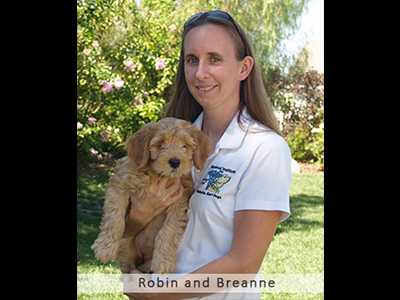Robin was born to the very first litter at Poco Creek Labradoodles. She was a sweetheart from day one–smart, fun and confident. When the National Institute for Diabetic Alert Dogs (NIDAD) called us about placing a puppy with them, we thought of Beige.