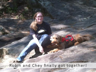 Chey, who was then 10 years old, named her mate Robin. But they would not meet for many, many months as Robin learned how to make a difference in Chey’s life. Through her own Facebook page, we followed Robin on her journey. Finally, in January 2015, she went to Chey in Alabama. Their journey together has begun now. Learn about the NIDAD program, Robin and Chey by following these links to Robin’s Pages.